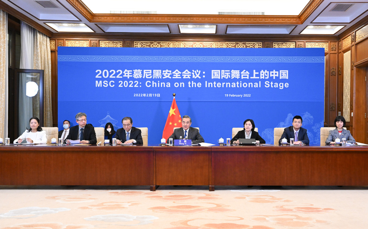 State Councilor and Foreign Minister Wang Yi made the remark via video to the 58th Munich Security Conference, where he said Ukraine should serve as a communication bridge between the East and West, instead of the frontier of a confrontation of powers.