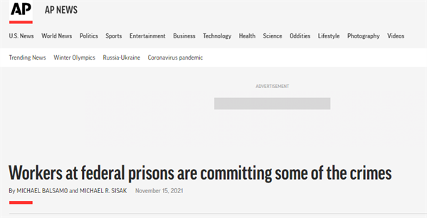 An article about an Associated Press investigation into criminal offences committed by federal prison workers published in November 2021. (Screenshot of the website of The Associated Press)