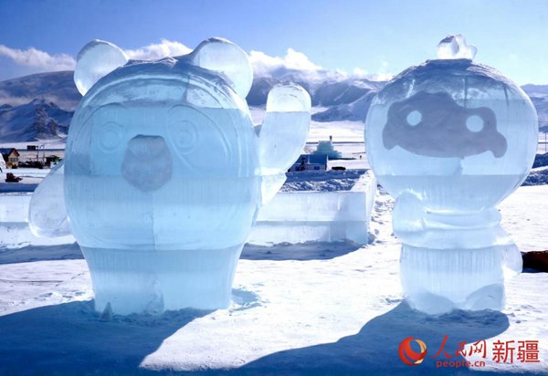 Ice sculptures as seen at the Sayram Lake resort in northwest China's Xinjiang Uygur Autonomous Region. (Photo/People's Daily Online)