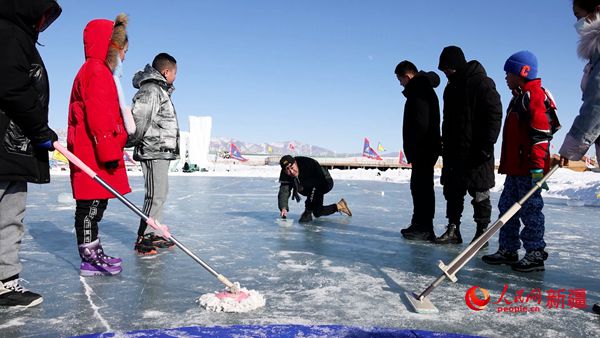 People play curling on Sayram Lake, in northwest China's Xinjiang Uygur Autonomous Region. (Photo/People's Daily Online)