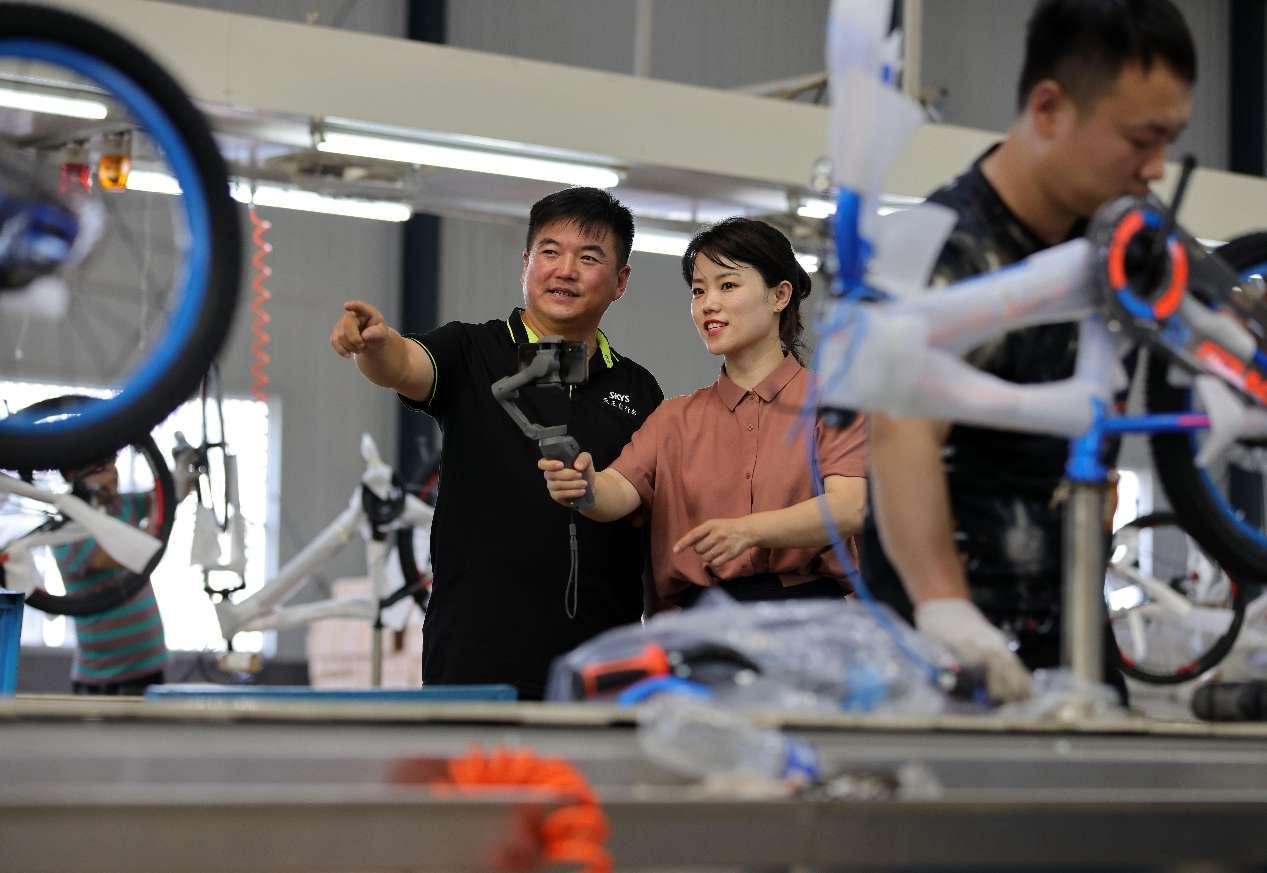 During the online recruitment activity held by a company in Guangzong county, Xingtai city, north China’s Hebei province, a host and the company’s human resource executive brief viewers about job vacancies, Sept. 9, 2021. (People’s Daily Online/Wang Lei)