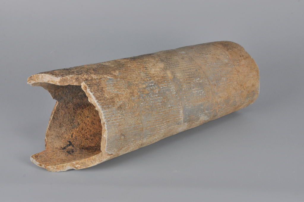 Photo provided by Shandong Institute of Cultural Relics and Archaeology on Feb. 21, 2022 shows a drainage pipe unearthed in a building complex site in east China's Shandong Province. (Shandong Institute of Cultural Relics and Archaeology/Handout via Xinhua)
