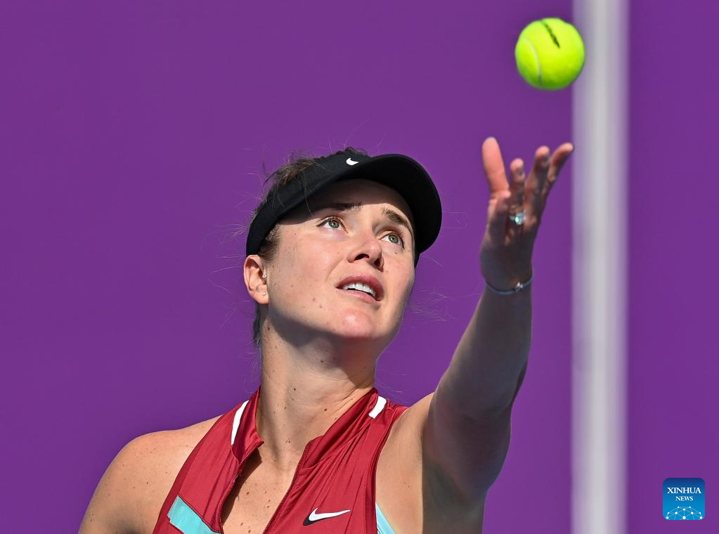 Elina Svitolina of Ukraine serves during the first round of WTA Qatar Open tennis tournament match against Tereza Martincova of Czech Republic at the Khalifa International Tennis Complex in Doha, capital of Qatar, on Feb. 21, 2022. (Photo by Nikku/Xinhua)