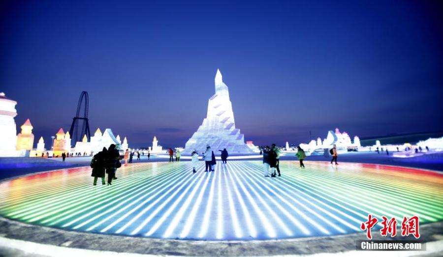Harbin Ice-Snow World has attracted surging tourists recently, over 4,000 visitors each day. (Photo: China News Service/Jiang Hui)