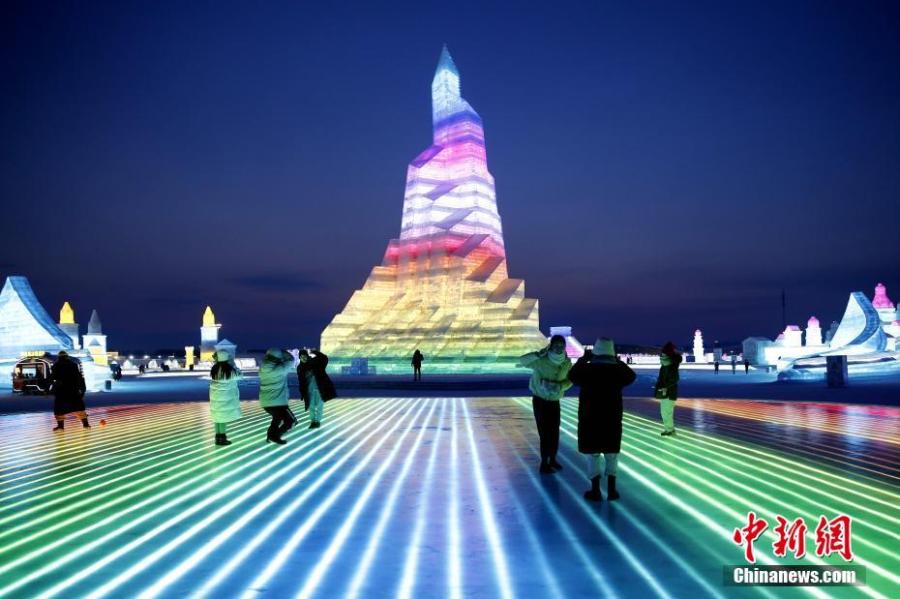 Harbin Ice-Snow World has attracted surging tourists recently, over 4,000 visitors each day. (Photo: China News Service/Jiang Hui)