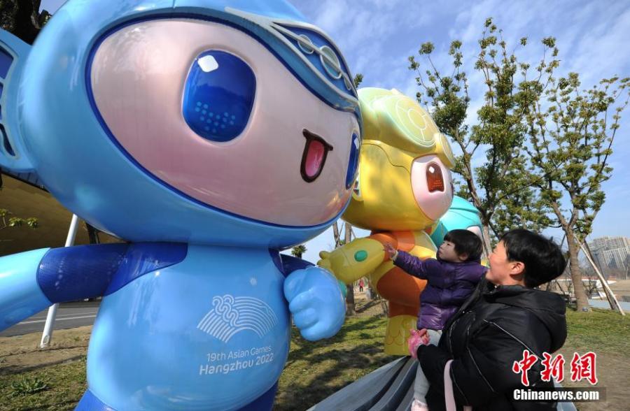 Photo taken on Feb.21, 2022 shows citizens celebrate the 200-day countdown to the 19th Asia Games in Hangzhou, capital city of east China's Zhejiang Province. (Photo: China News Service/Wang Gang)