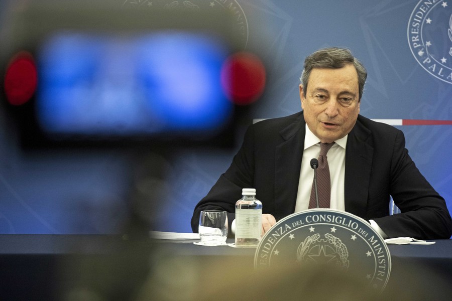 Italian Prime Minister Mario Draghi attends a joint press conference in Rome, Italy, on Jan. 10, 2022. (Str/Xinhua)