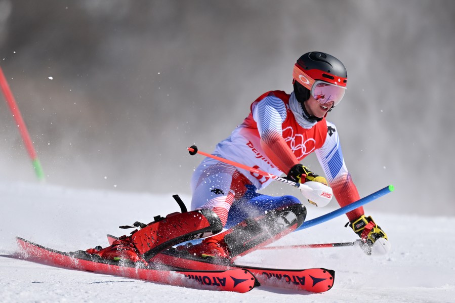 Asa Miller of the Philippines competes during alpine skiing men's slalom of Beijing 2022 Winter Olympics at National Alpine Skiing Centre in Yanqing, Beijing, Feb. 16, 2022. (Xinhua/Chen Yichen)