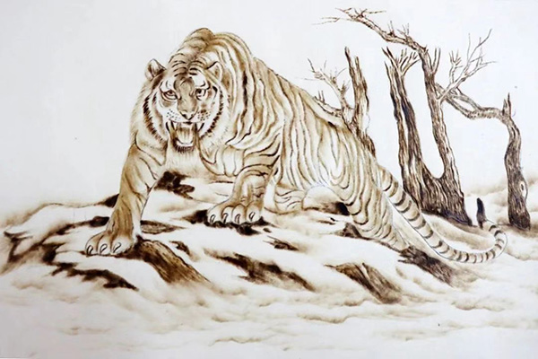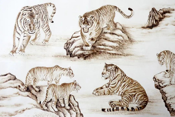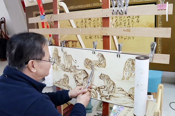 Shanghainese man creates 10-meter-long painting themed on Year of the Tiger using traditional electric iron techniques