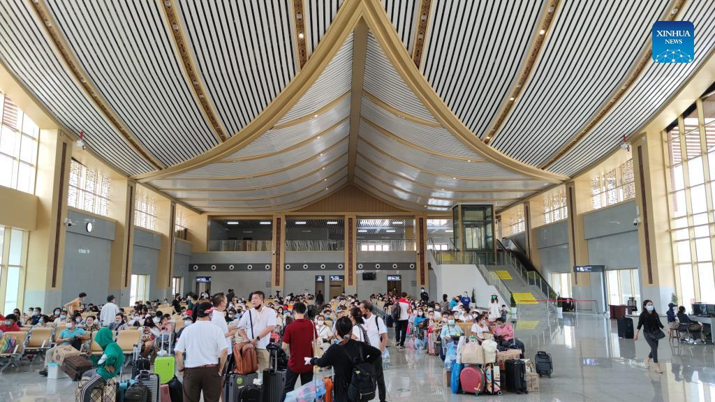 Photo taken on Feb. 13, 2022, shows the waiting hall of the Luang Prabang Station along the China-Laos Railway in Luang Prabang, Laos. The Laos-China Railway Company (LCRC) has announced it will operate slower-speed trains in addition to the two existing high-speed EMU (electric multiple unit) trains to meet the growing needs of passengers. The LCRC has been running two pairs of EMU trains every day, one pair between Vientiane and Boten bordering China, and another between Vientiane and the ancient capital of Luang Prabang. (Photo by Li Huan/Xinhua)