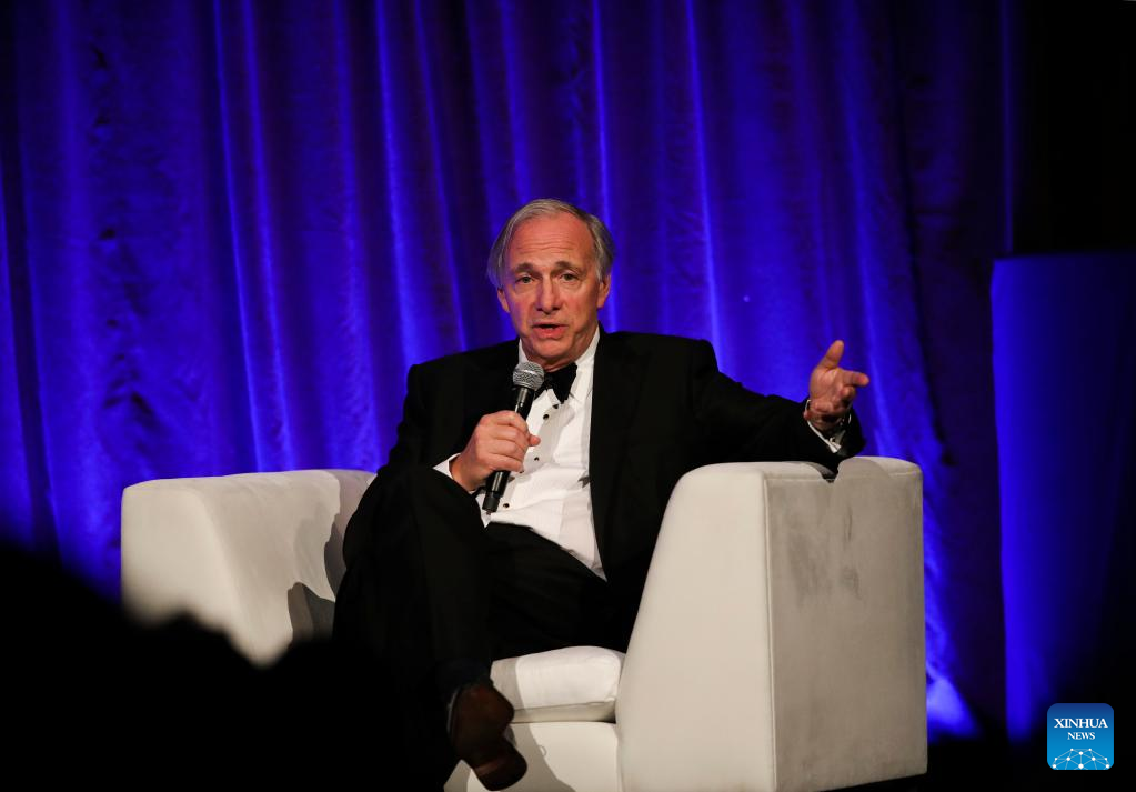 Ray Dalio, founder of Bridgewater Associates, speaks during the annual New Year gala of the China General Chamber of Commerce-USA (CGCC-USA) in New York, the United States, Feb. 22. 2022. (Xinhua/Wang Ying)