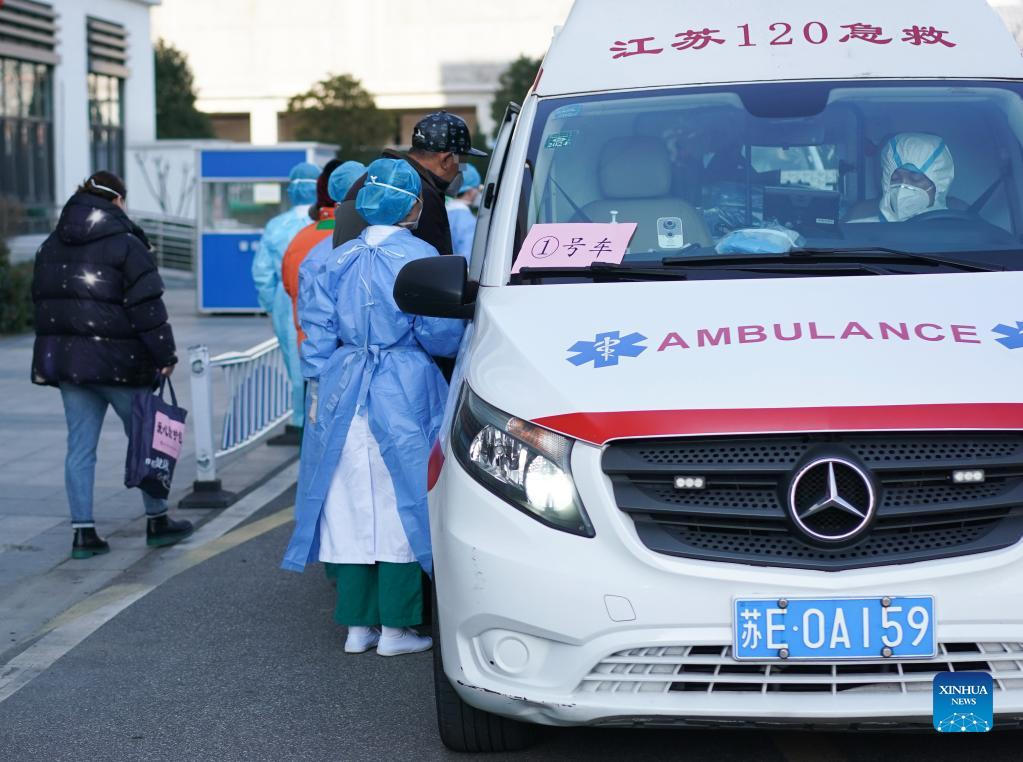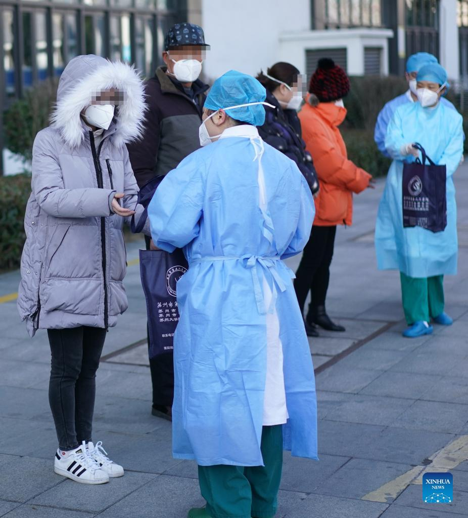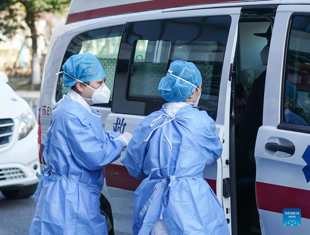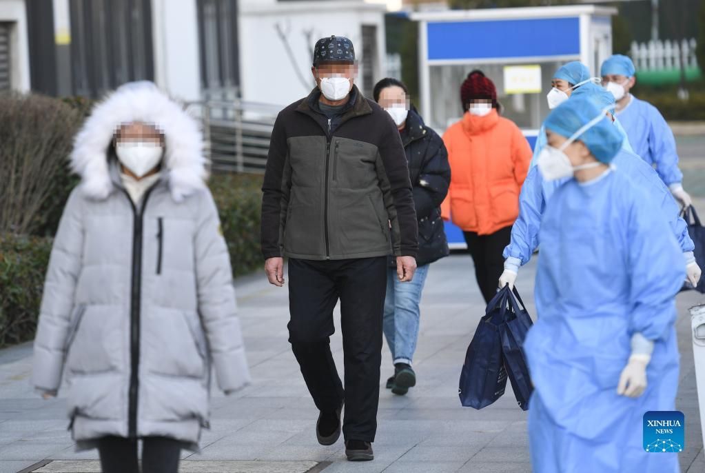 Patients who have recovered from COVID-19 are discharged from a designated hospital for COVID-19 patients in Suzhou, east China's Jiangsu Province, Feb. 24, 2022. Four cured COVID-19 patients were discharged from hospital in Suzhou on Thursday, and then they were transferred to a rehabilitation hospital. (Xinhua/Ji Chunpeng)