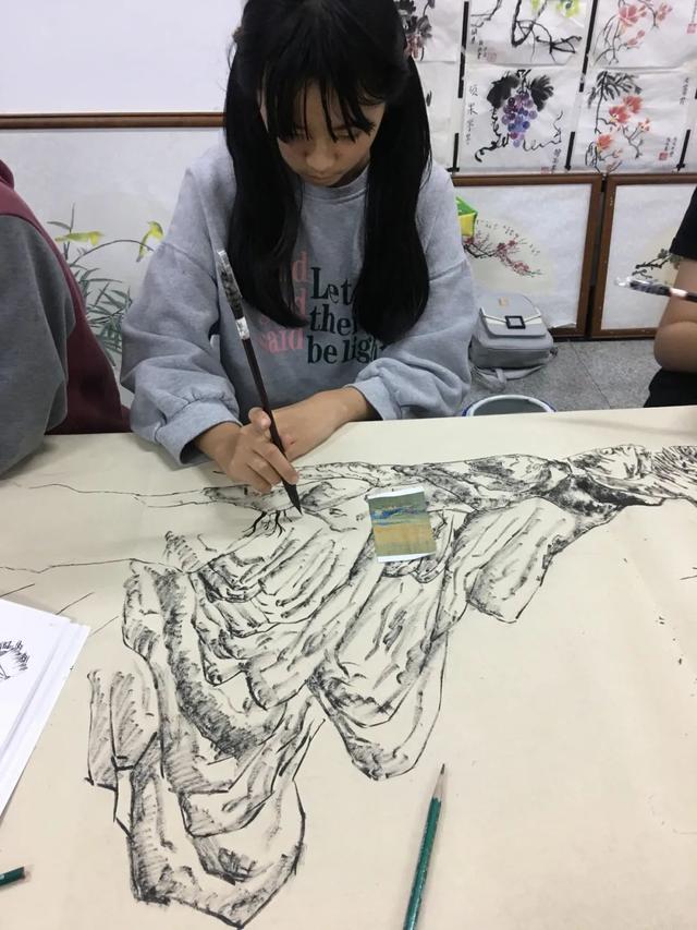 To help the students gain a deeper understanding of the charm of traditional art, Li Haiyan, who teaches traditional Chinese painting to them, explained the ancient masterpiece to them in all of its many details. She also let the students watch an episode of the TV program National Treasure, which told the stories behind the masterpiece.