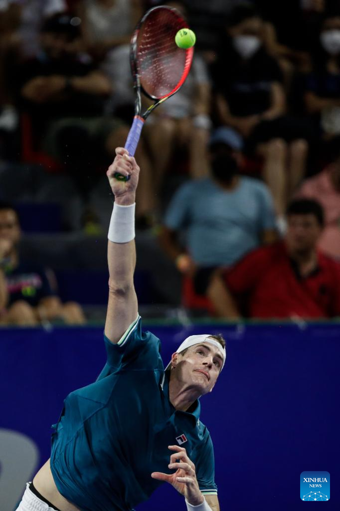 John Isner of the United States hits a return during the men's singles round of 16 match between Cameron Norrie of Great Britain and John Isner of the United States at the 2022 ATP Mexican Open tennis tournament in Acapulco, Mexico, Feb. 23, 2022. (Photo by Francisco Canedo/Xinhua)