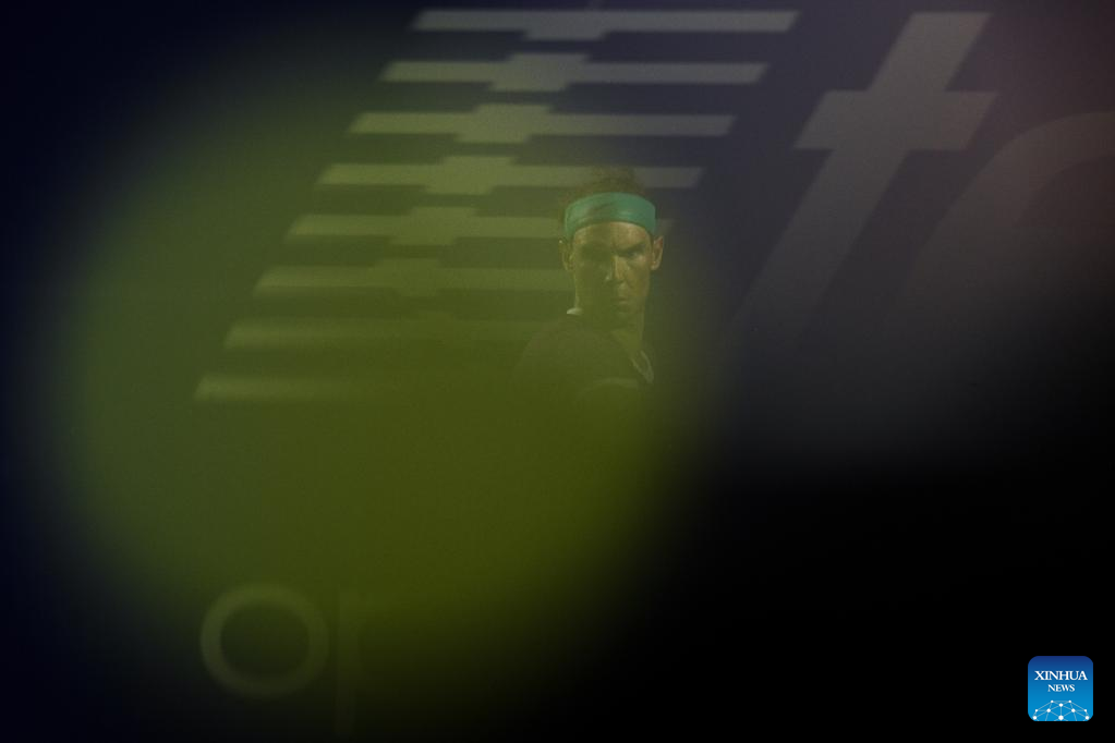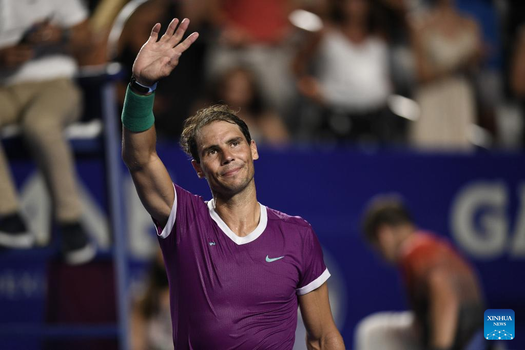 Rafael Nadal of Spain reacts during the men's singles round of 16 match against Stefan Kozlov of the United States at the 2022 ATP Mexican Open tennis tournament in Acapulco, Mexico, Feb. 23, 2022. (Xinhua/Xin Yuewei)