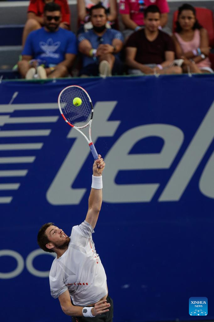 Cameron Norrie of Great Britain serves during the men's singles round of 16 match between Cameron Norrie of Great Britain and John Isner of the United States at the 2022 ATP Mexican Open tennis tournament in Acapulco, Mexico, Feb. 23, 2022. (Photo by Francisco Canedo/Xinhua)
