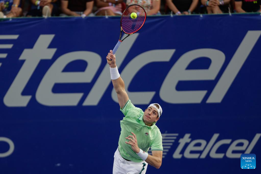 John Isner of the United States serves during the men's singles round of 16 match between Cameron Norrie of Great Britain and John Isner of the United States at the 2022 ATP Mexican Open tennis tournament in Acapulco, Mexico, Feb. 23, 2022. (Photo by Francisco Canedo/Xinhua)