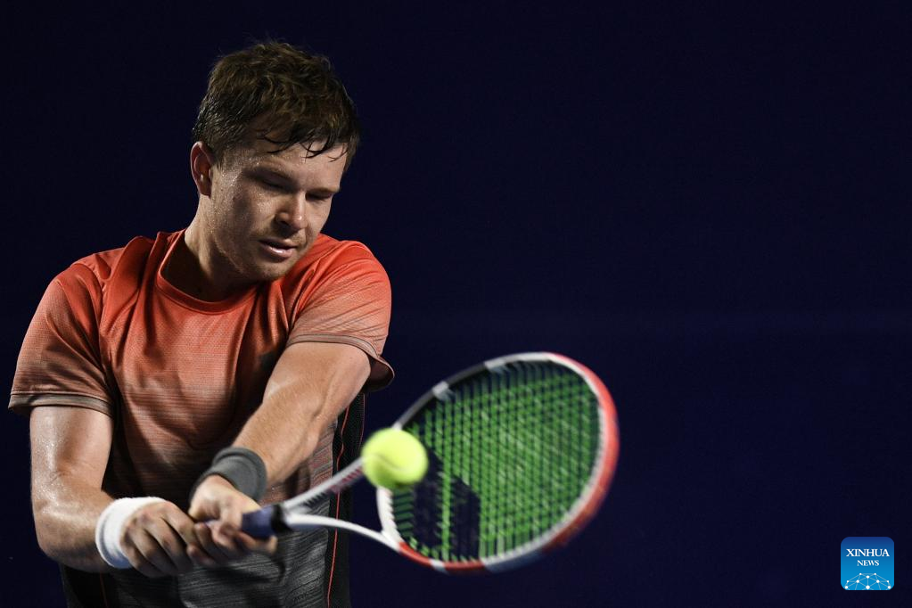 Cameron Norrie of Great Britain hits a return during the men's singles round of 16 match between Cameron Norrie of Great Britain and John Isner of the United States at the 2022 ATP Mexican Open tennis tournament in Acapulco, Mexico, Feb. 23, 2022. (Photo by Francisco Canedo/Xinhua)