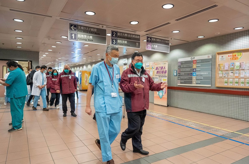 Medical workers dispatched by the Chinese mainland to assist Hong Kong with epidemic response arrive at Pamela Youde Nethersole Eastern Hospital, Eastern District, Hong Kong, Feb. 23. (Photo/news.gov.hk)