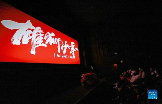 People watch Chinese animation "I Am What I Am" during the movie's screening in London, Britain, on Feb. 26, 2022. Unfolding from a brief introduction to lion dance, a centuries-old Chinese folk dance mostly performed to celebrate Lunar New Year, the movie "I Am What I Am" follows an underdog teenager in Guangdong, southern China, as he joins hands with two friends to pursue a dream against all odds -- becoming the best lion dance performer. (Xinhua/Li Ying)