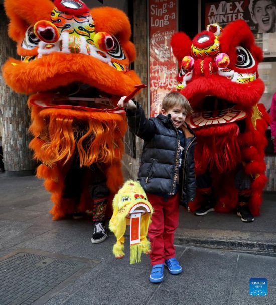 A boy shows a dance lion souvenir after the screening of Chinese animation "I Am What I Am" in London, Britain, on Feb. 26, 2022. Unfolding from a brief introduction to lion dance, a centuries-old Chinese folk dance mostly performed to celebrate Lunar New Year, the movie "I Am What I Am" follows an underdog teenager in Guangdong, southern China, as he joins hands with two friends to pursue a dream against all odds -- becoming the best lion dance performer. (Xinhua/Li Ying)
