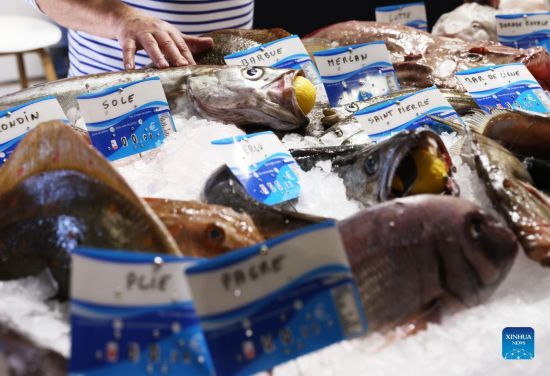 Seafood are on display during the 58th International Agriculture Fair at the Porte de Versailles exhibition center in Paris, France, Feb. 26, 2022. The fair will last until March 6, 2022. (Xinhua/Gao Jing)