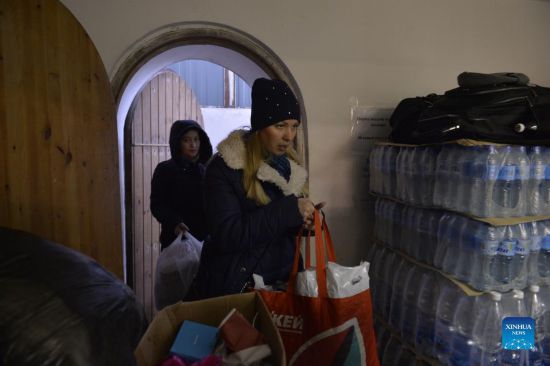 People donate supplies for refugees from Donbass, in Rostov-on-Don, Russia, Feb. 26, 2022. (Photo by Andrey Bok/Xinhua)