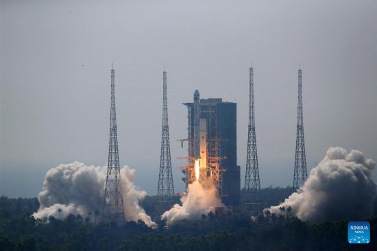 The Long March-8 rocket carrying 22 satellites blasts off from the Wenchang Spacecraft Launch Site in south China's Hainan Province, Feb. 27, 2022. (Photo by Tu Haichao/Xinhua)