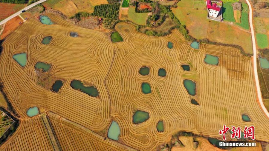 Bird's view: Furrows look like fingerprint on Earth in Jiangxi