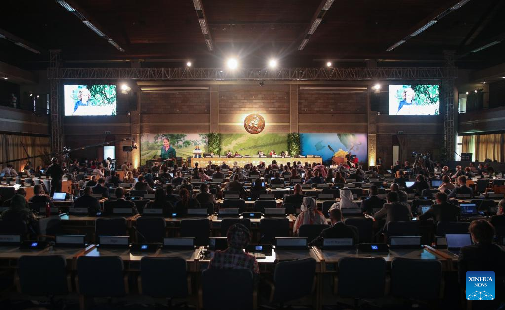 NAIROBI, Feb. 28 (Xinhua) -- The resumed fifth session of the UN Environment Assembly (UNEA-5) kicked off in the Kenyan capital of Nairobi on Monday, with delegates renewing call for action on the triple planetary crisis of climate change, pollution and biodiversity loss in order to secure a green and resilient future for humanity.