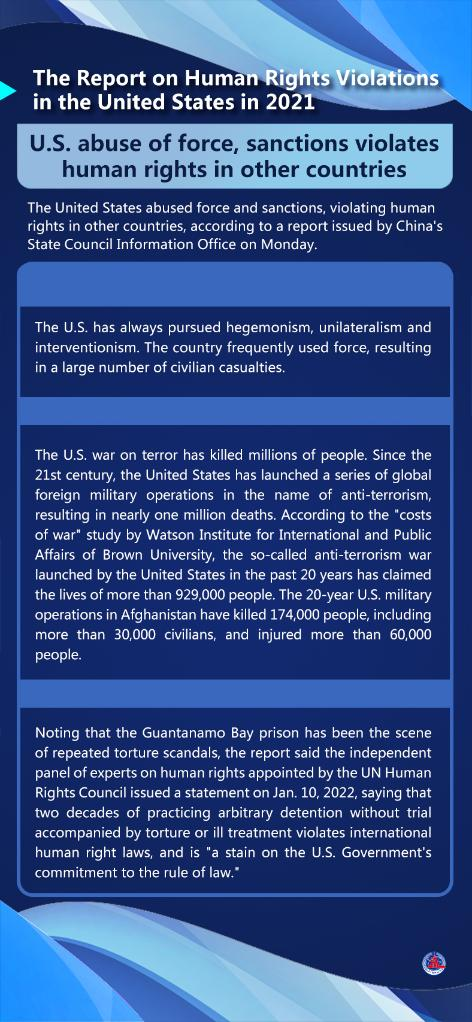 BEIJING, Feb. 28 (Xinhua) -- China's State Council Information Office on Monday issued the Report on Human Rights Violations in the United States in 2021.