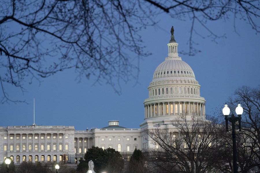 Photo taken on Feb. 18, 2022 shows the Capitol building in Washington, D.C., the United States, Feb. 18, 2022. (Xinhua/Liu Jie)