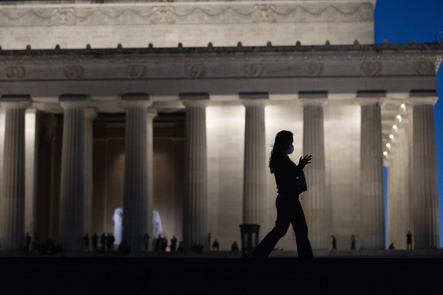 People visit the Lincoln Memorial in Washington, D.C., the United States, Feb. 23, 2022. (Xinhua/Liu Jie)