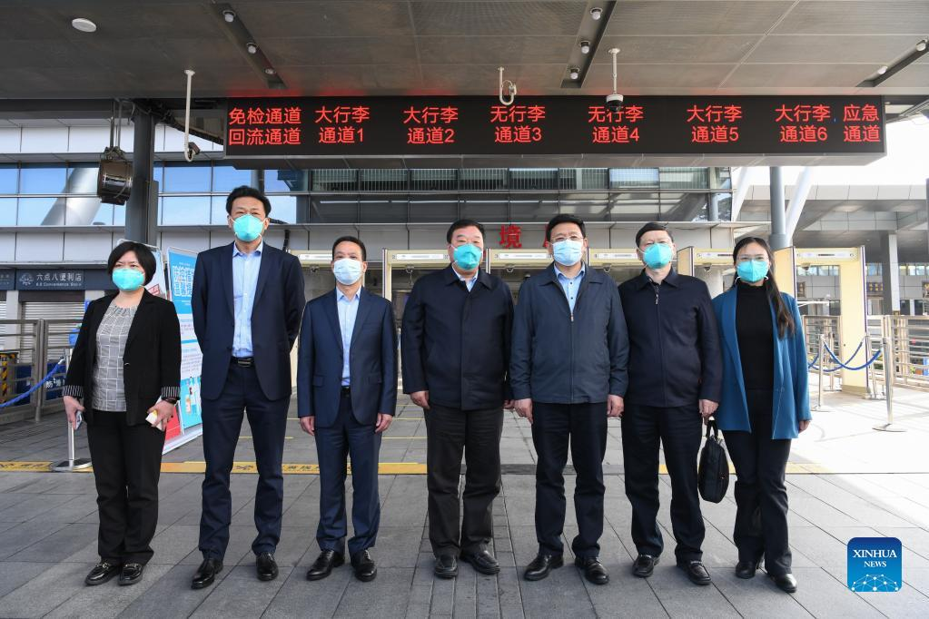 The third team of mainland health experts and personnel arrive at south China's Shenzhen Bay Port, Feb. 28, 2022. (Xinhua/Liang Xu)
