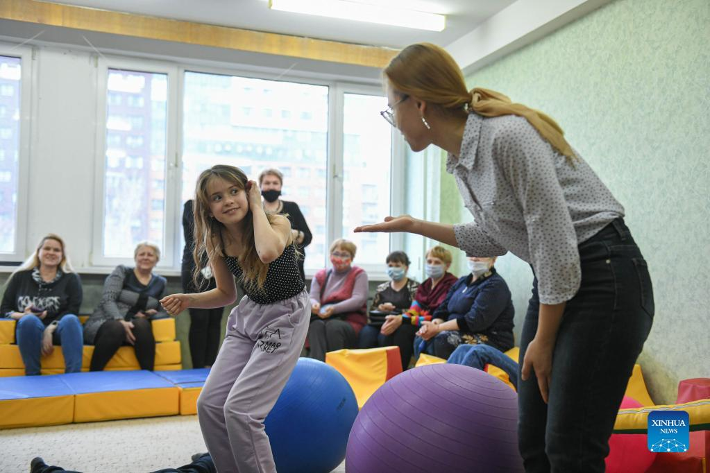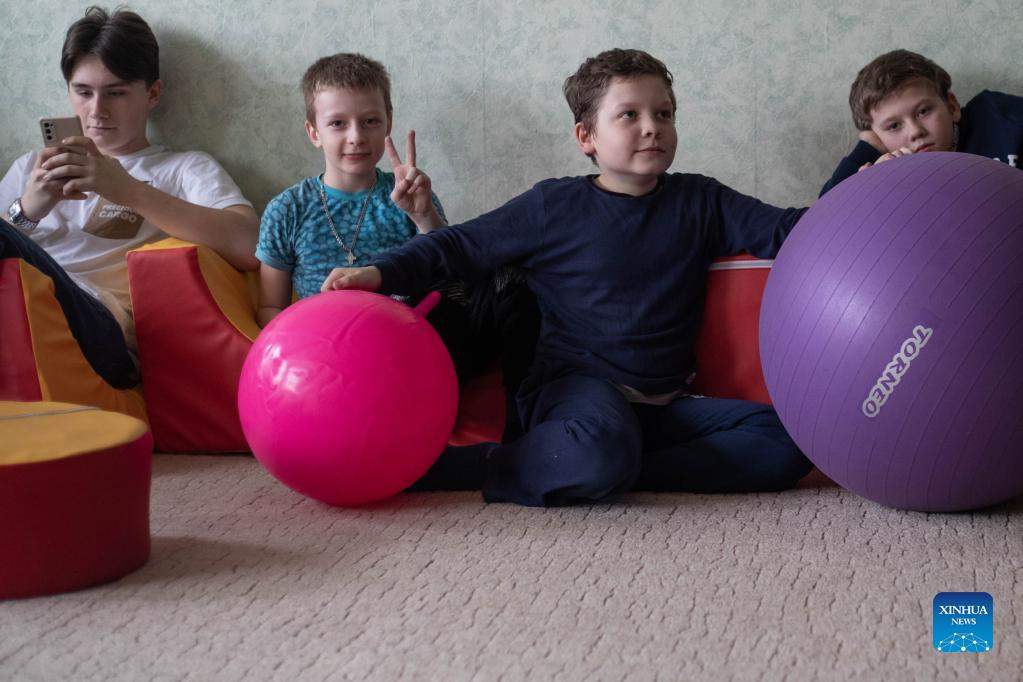Children from Donbass play at an accommodation site in a university dormitory in Rostov-on-Don, Russia, on Feb. 28, 2022. (Xinhua/Bai Xueqi)