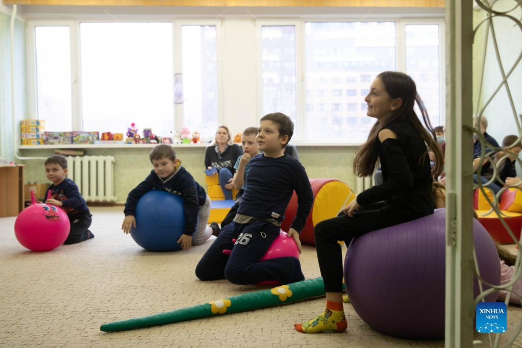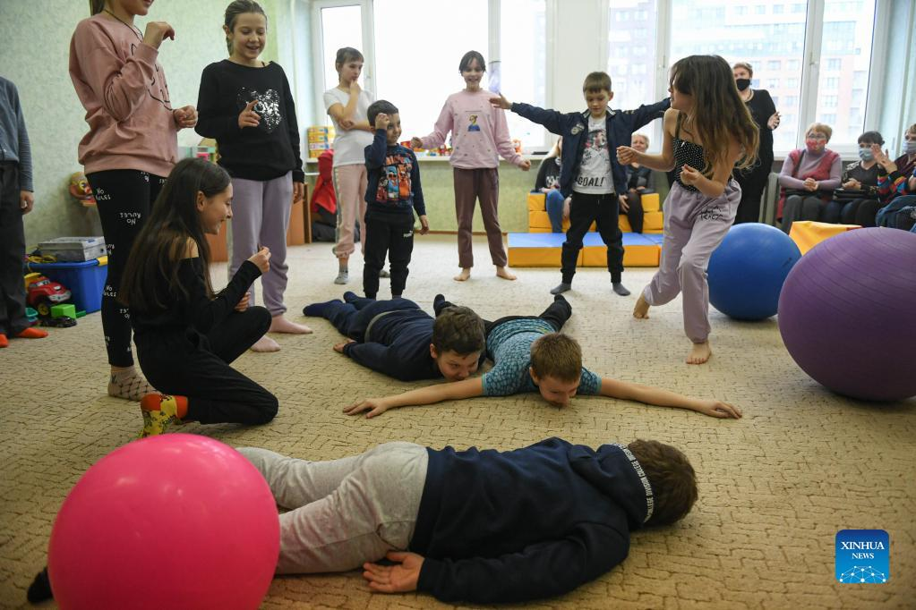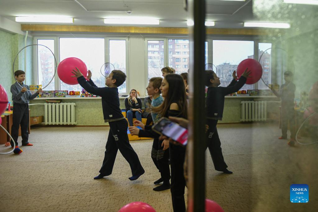 Children from Donbass play at an accommodation site in a university dormitory in Rostov-on-Don, Russia, on Feb. 28, 2022. (Xinhua/Evgeny Sinitsyn)