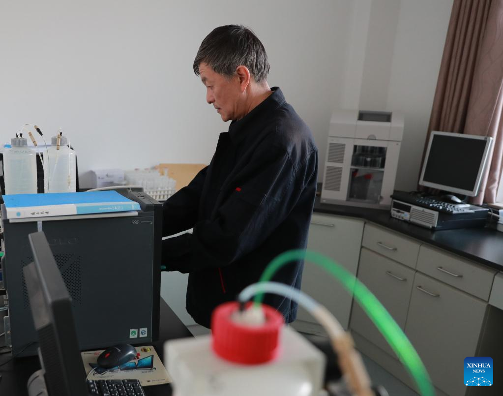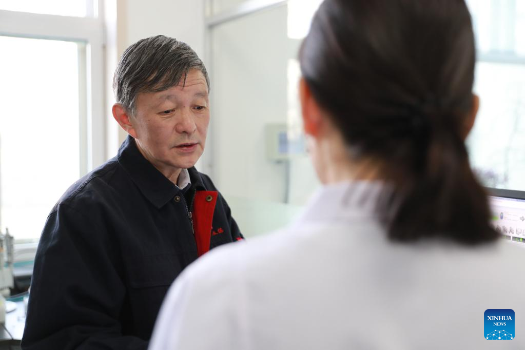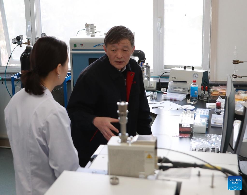 Su Bomin works at a research laboratory of Dunhuang Academy in Dunhuang, northwest China's Gansu Province, Feb. 23, 2022. Su Bomin, a deputy to the National People's Congress (NPC), also dean of Dunhuang Academy, has been working for three decades in the Mogao Grottoes, a UNESCO World Heritage site in Dunhuang, northwest China's Gansu Province. (Xinhua/Zhang Yujie)