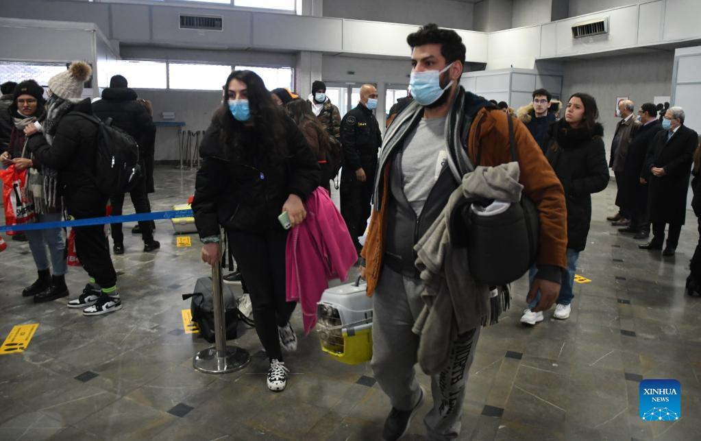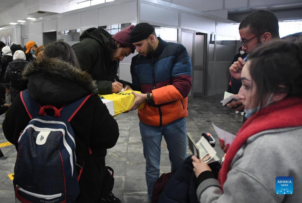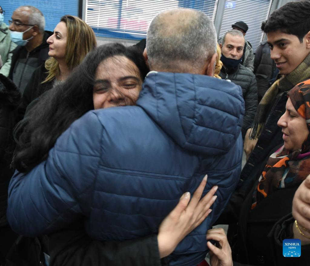 Tunisians evacuated from Ukraine arrive at Tunis-Carthage International Airport in Tunis, Tunisia, on March 1, 2022. (Photo by Adel Ezzine/Xinhua)
