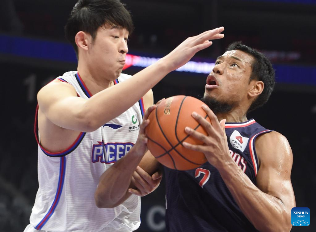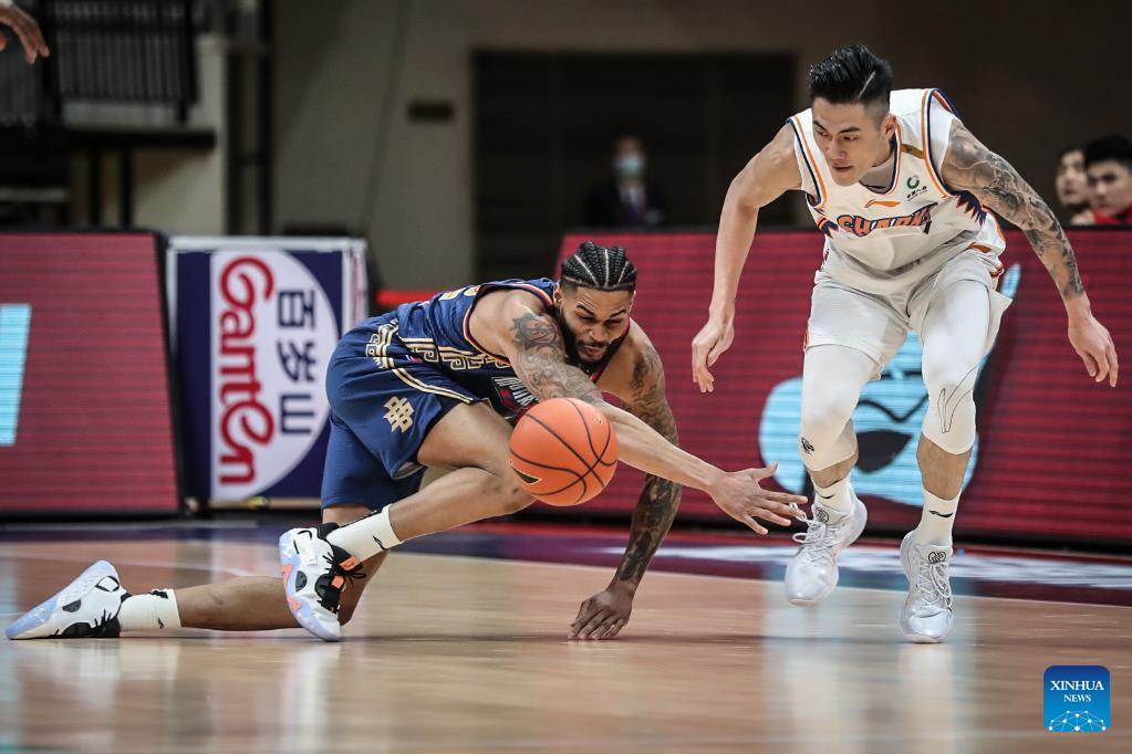 Taylor Rochestie (R) of Tianjin Pioneers competes during the 29th round match between Guangzhou Loong Lions and Tianjin Pioneers at the 2021-2022 season of the Chinese Basketball Association (CBA) league in Foshan of south China's Guangdong Province, on March 1, 2022. (Xinhua/Lu Hanxin)
