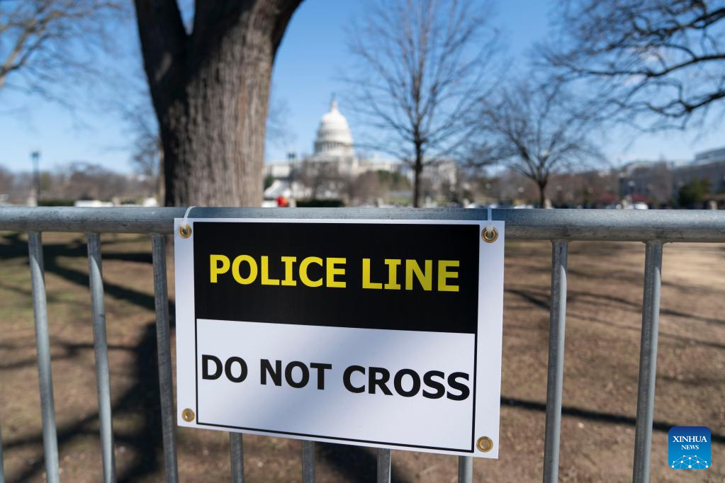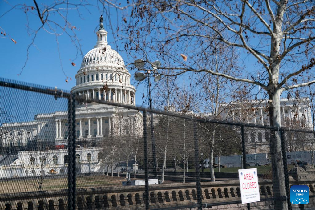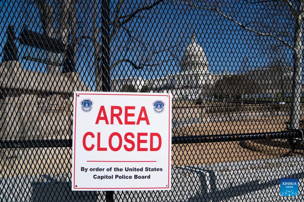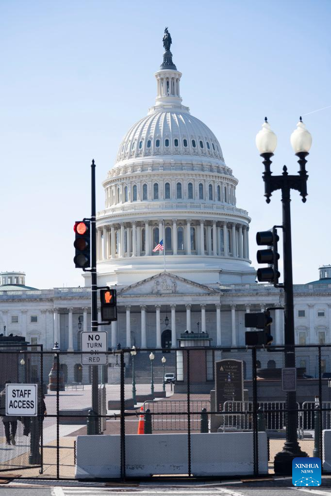 WASHINGTON, Feb. 27 (Xinhua) -- Fencing has been reinstalled around the U.S. Capitol ahead of President Joe Biden's State of the Union address slated for Tuesday night.