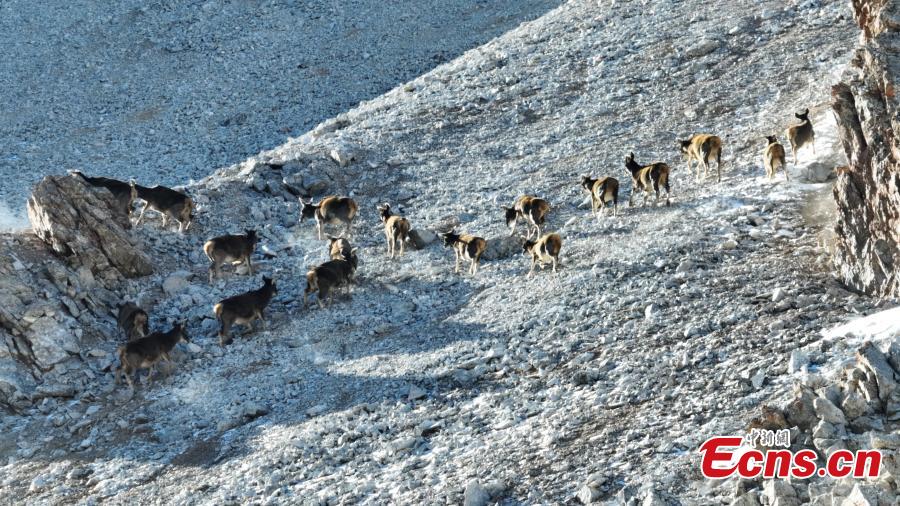 About 160 white-lipped deer, also known as Thorold's deer, have been spotted in the Qilian Mountains National Park in northwest China's Gansu Province. (Photo: China News Service/Wu Xuefeng)
