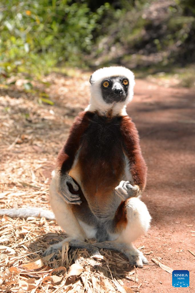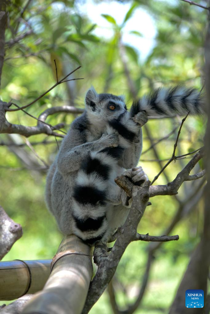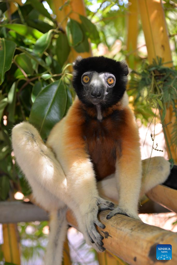 A lemur is seen in a zoo near Antananarivo, capital of Madagascar, March 2, 2022. The World Wildlife Day is observed on March 3 every year to raise the awareness on the world's wild animals and plants. (Photo by Sitraka Rajaonarison/Xinhua)
