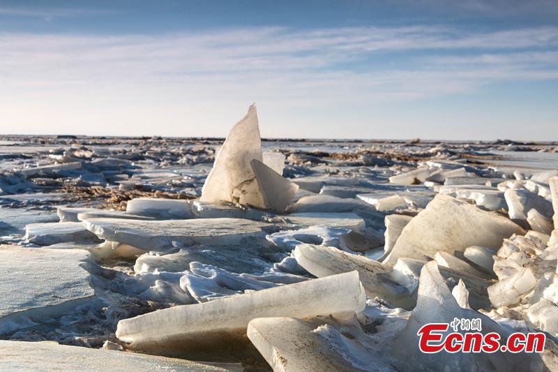 Sunset scenery over the frozen Qinghai Lake, China's largest inland salt lake, at Erlangjian scenic area, northwest China's Qinghai Province. (Photo: China New Service/Zhao Haimei)