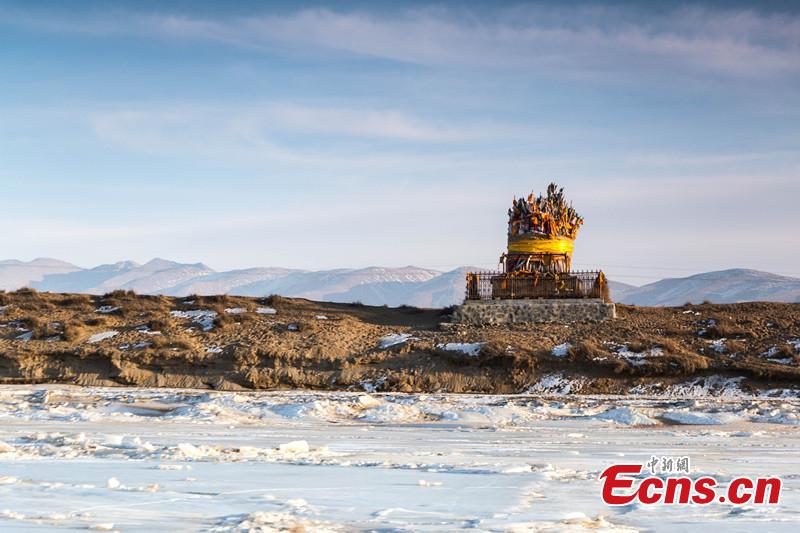 Sunset scenery over the frozen Qinghai Lake, China's largest inland salt lake, at Erlangjian scenic area, northwest China's Qinghai Province. (Photo: China New Service/Zhao Haimei)