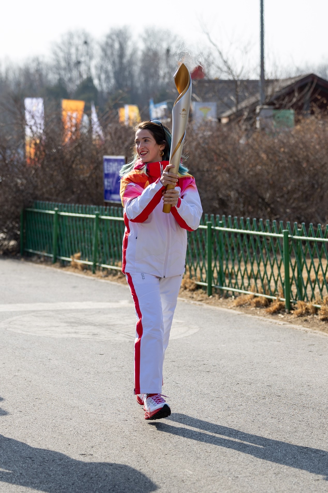 Martina Caironi, a 32-year-old Italian Paralympic athlete and a gold medalist who competed at the 2012 Summer Paralympics and 2016 Summer Paralympics, is one of the torchbearers inside the "closed-loop bubble". (People’s Daily Online/Weng Qiyu)