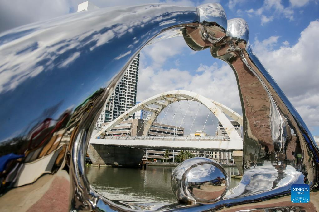 The China-funded Binondo-Intramuros Bridge is under construction in Manila, the Philippines on March 3, 2022. The Binondo-Intramuros Bridge is a steel bowstring arch bridge in Manila City that will connect the Intramuros side and Binondo side over the Pasig River. (Xinhua/Rouelle Umali)
