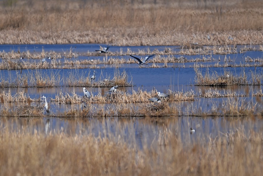 Birds are seen at the Beijing Wild Duck Lake Wetland in the suburban Yanqing District of Beijing, capital of China, April 5, 2020. (Xinhua/Chen Zhonghao)