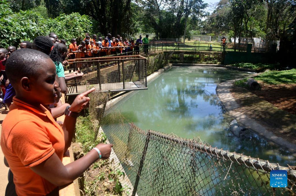 Children visit a crocodile sanctuary during the World Wildlife Day celebrations at Uganda Wildlife Conservation Education Center in Entebbe, Uganda, on March 3, 2022. (Photo by Nicholas Kajoba/Xinhua)