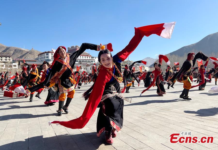 People dressed in traditional costumes celebrate the Tibetan New Year in Tibetan Autonomous Prefecture of Yushu in northwest China's Qinghai Province, March 3, 2022. The Tibetan New Year, a traditional festival of the Tibetan ethnic group, falls on Thursday this year. (Photo: China News Service/Ma Mingyan)