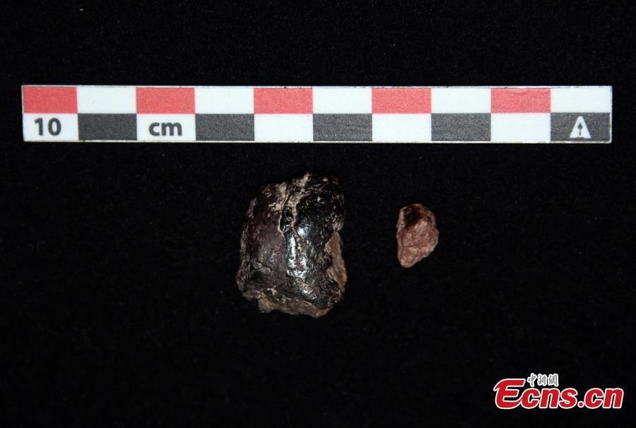 Photo taken on Jan. 25, 2022, shows a sample of ancient ochre discovered at the archaeological site of Xiamabei in Yu County, Zhangjiakou City, north China's Hebei Province. (Photo: China News Service/Sun Zifa)